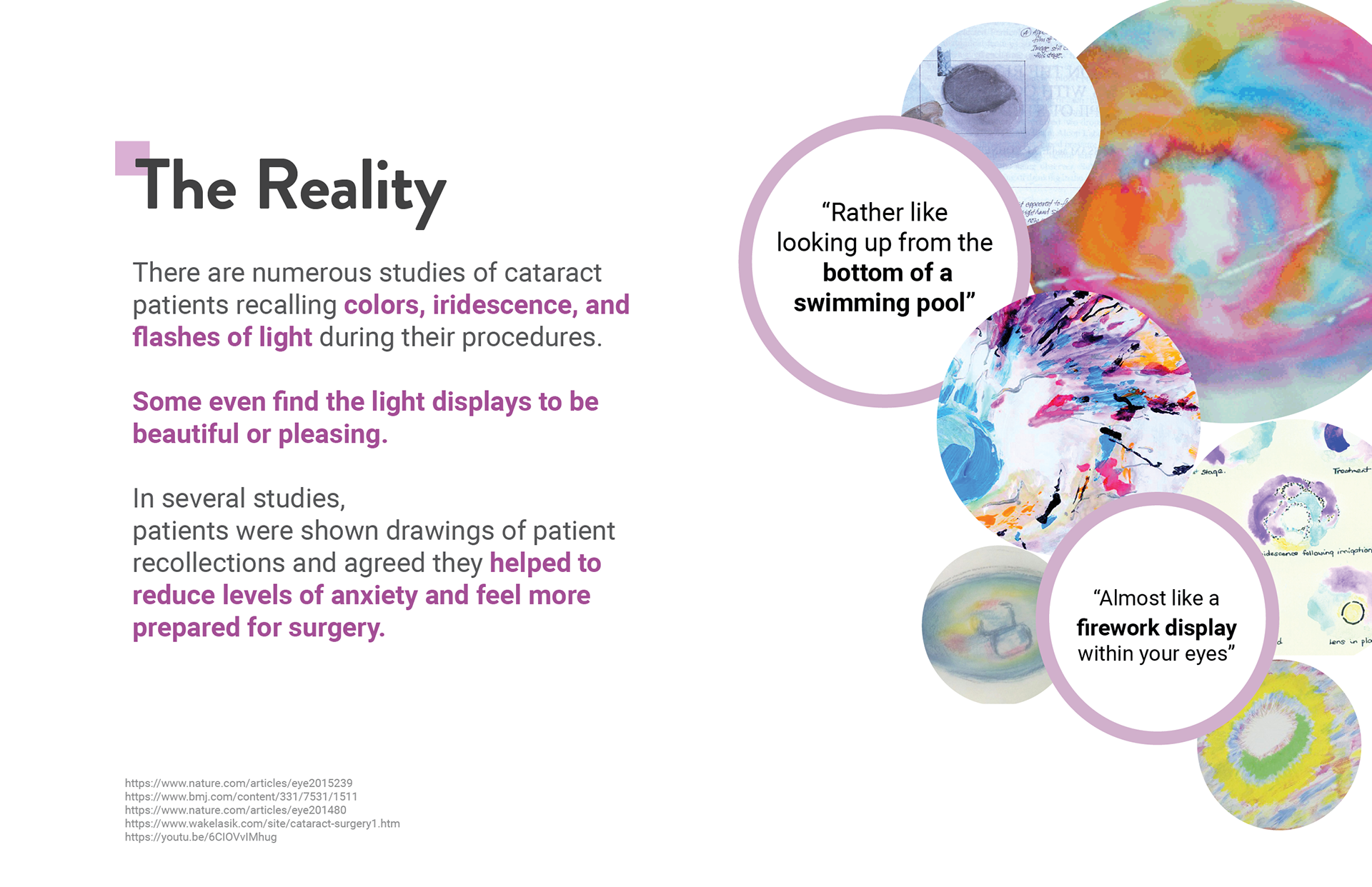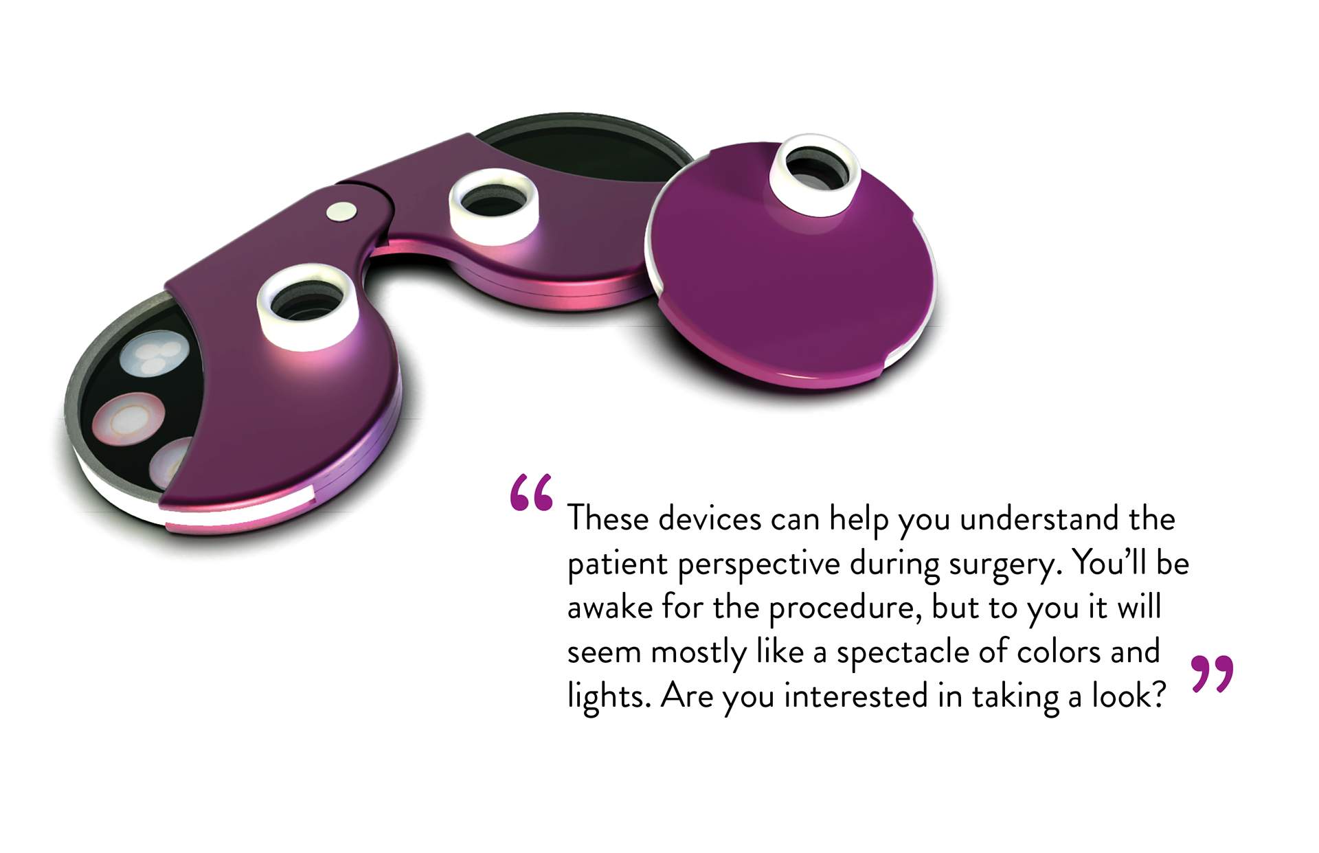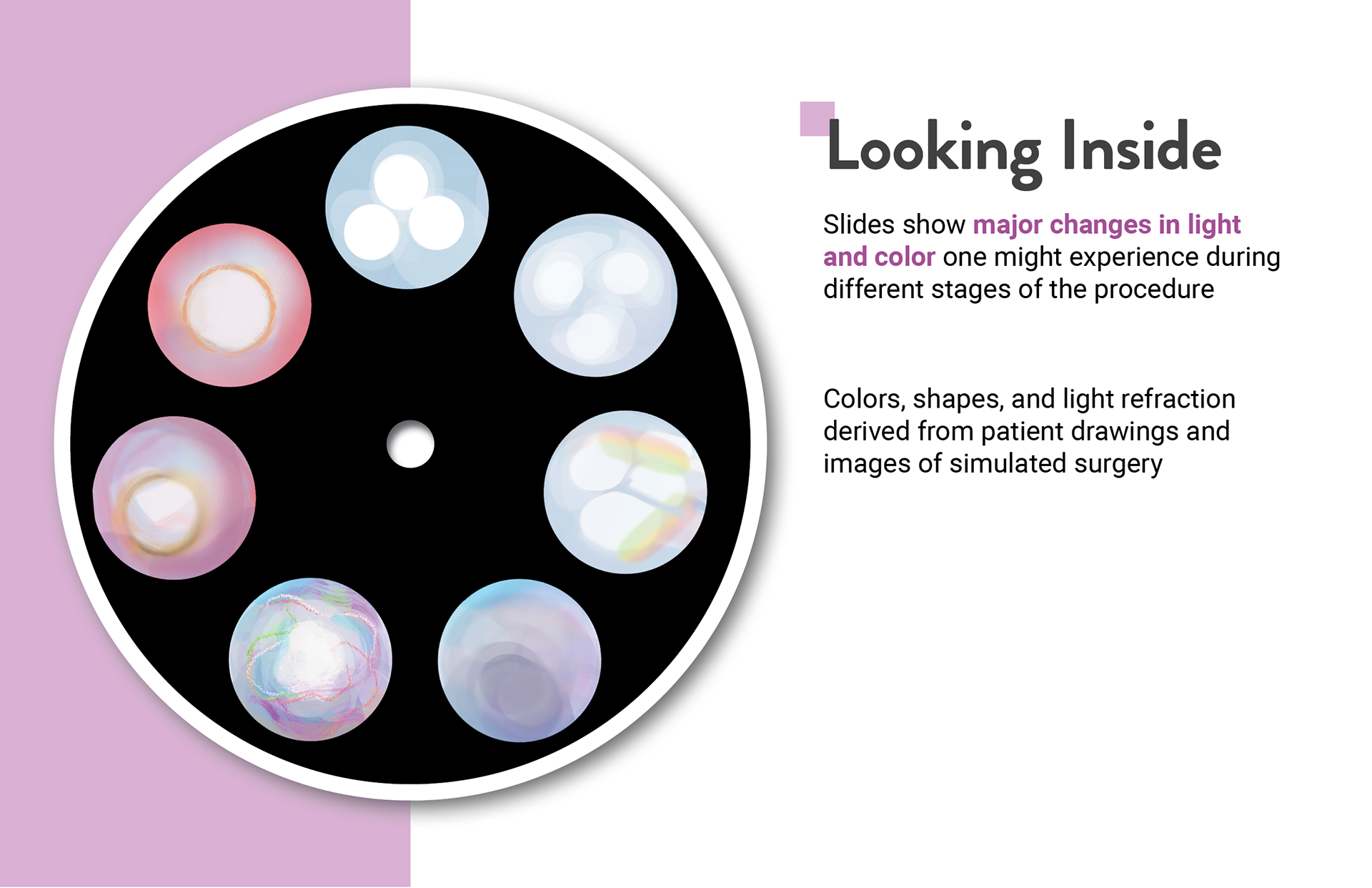 Visualization tools to ease pre-operative anxiety for cataract surgery patients. Designed to benefit the eye clinic of a major healthcare institution in the Pittsburgh area.