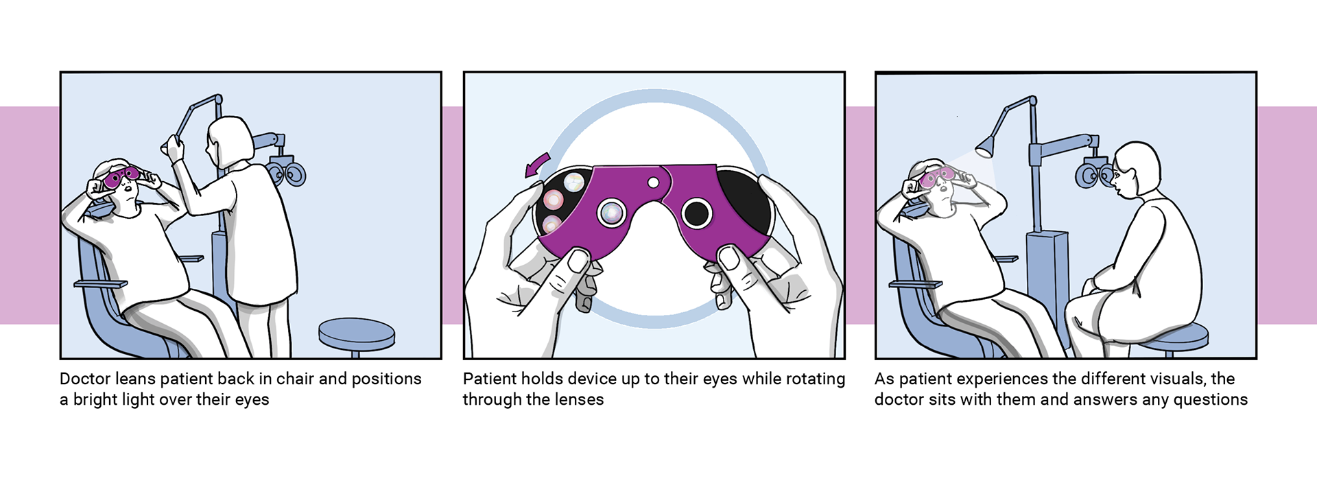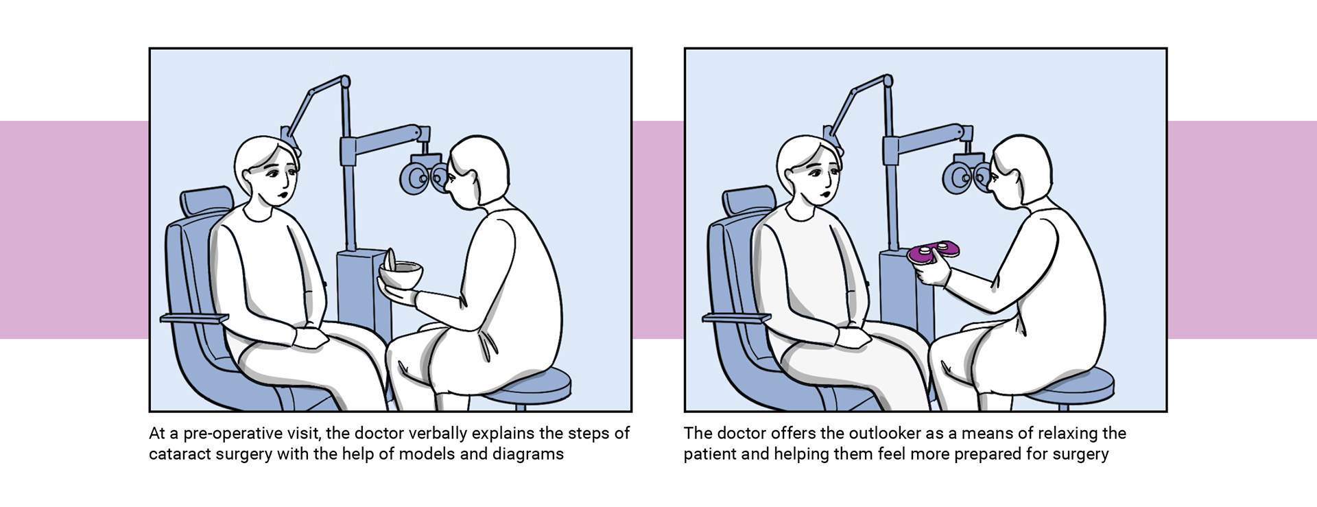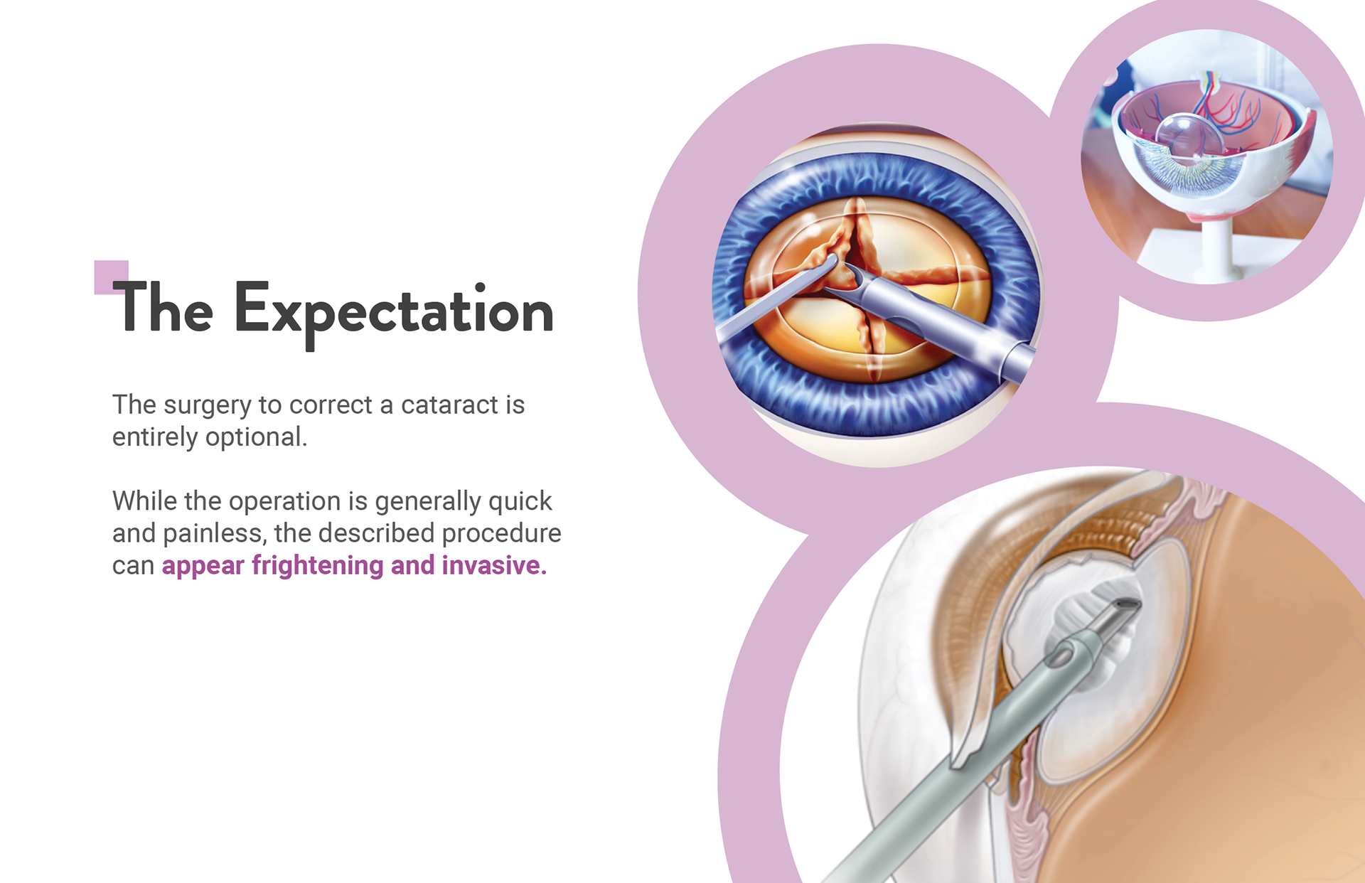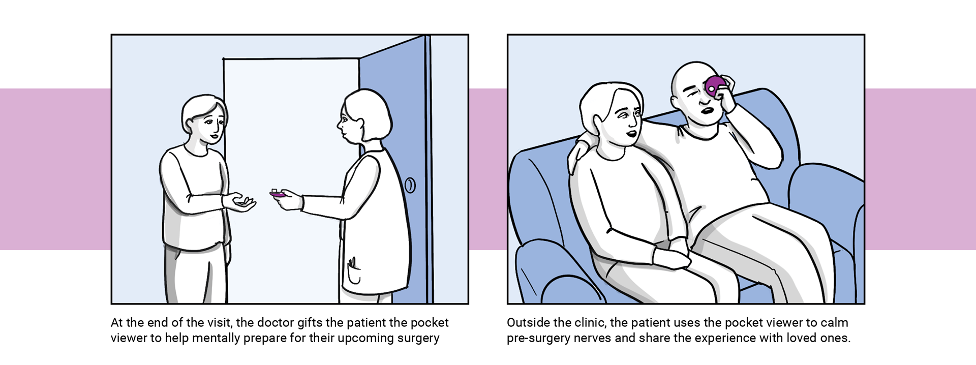 Visualization tools to ease pre-operative anxiety for cataract surgery patients. Designed to benefit the eye clinic of a major healthcare institution in the Pittsburgh area.